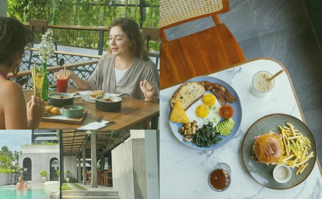 Morning workout at Train At Six? Walk straight to breakfast. Need to work after eating? Stay in your seat and connect to the WiFi. Afternoon energy dip? Hit the cold plunge pool. Client dinner at 7? The restaurant’s ready – whether you’re looking for a best dinner in Canggu or planning a casual dinner in Canggu.